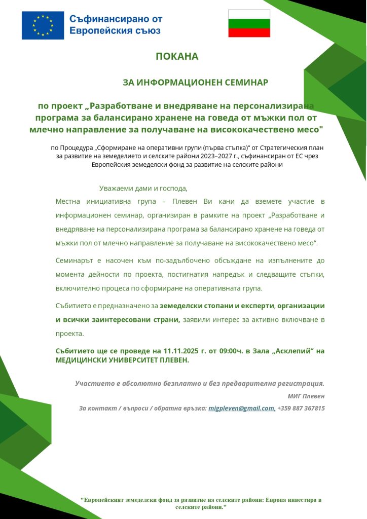 ПОКАНА ЗА ИНФОРМАЦИОНЕН СЕМИНАР